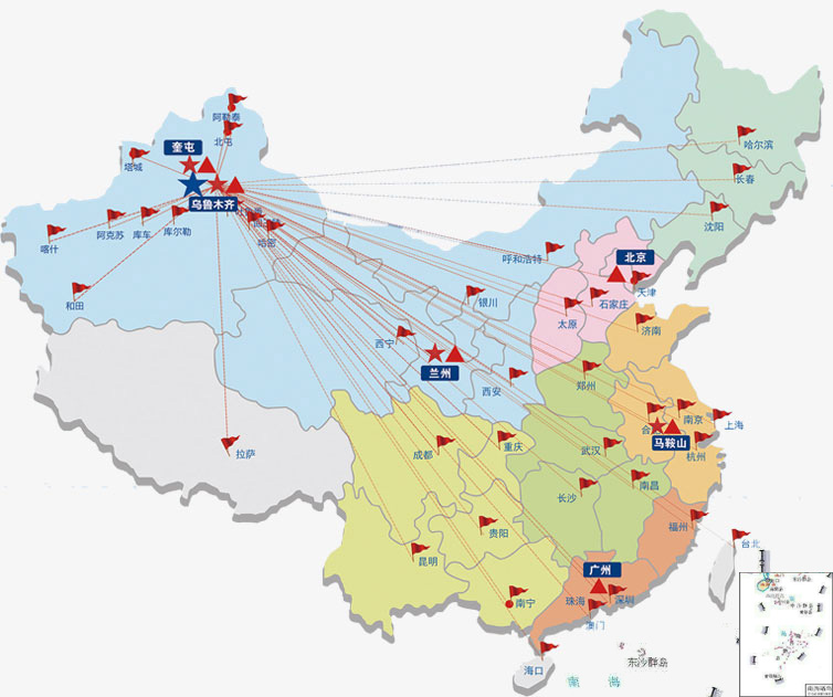 新疆公司、蘭州公司、馬鞍山公司、廣州公司、北京公司以及哈薩克斯坦國際貿易公司