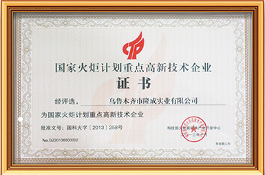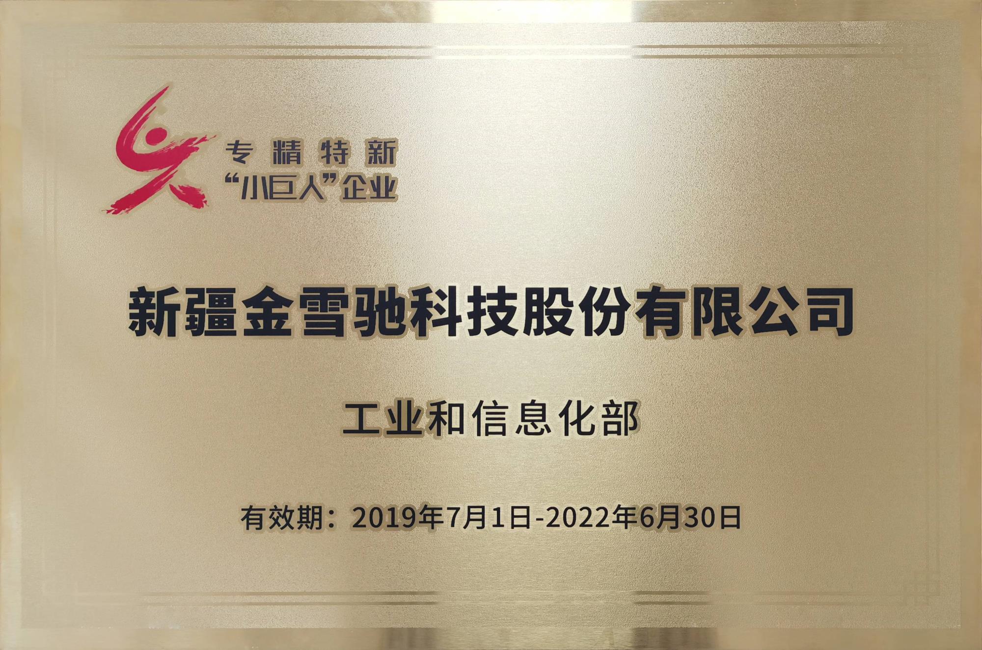 2019年新疆金雪馳科技股份有限公司獲得烏魯木齊市首批市級“科技小巨人”和“專精特新”企業榮譽稱號。
